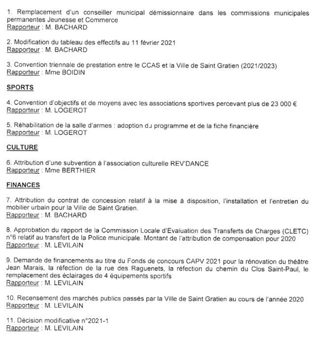 Le Conseil municipal de Saint Gratien se réunira le jeudi 11 février 2021.