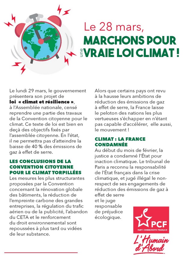 On marche pour le climat ce dimanche 28 mars 2021 ! Rendez-vous place de l’Opéra à 14h pour un défilé en direction de République.