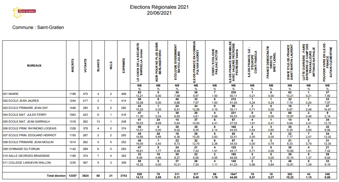 Élections 2021 Le 21 juin 202121 juin 2021 par isabellevolatdans Saint-Gratien Les résultats du premier tour des élections départementales et régionales de juin 2021 à Saint Gratien Partager : Cliquer pour partager sur X(ouvre dans une nouvelle fenêtre) X Cliquez pour partager sur Facebook(ouvre dans une nouvelle fenêtre) Facebook J’aime chargement…