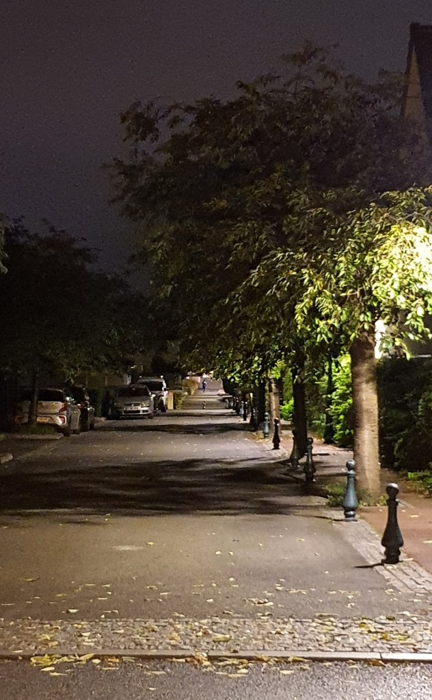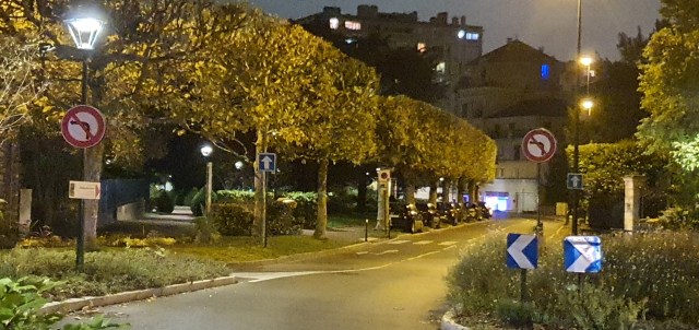 Par contre, la femme qui rentre de la gare et serait inquiète dans le noir… impossible ! L’extinction se fait en général vers 1h du matin mais les trains ne circulent plus chez nous après 22h30 !