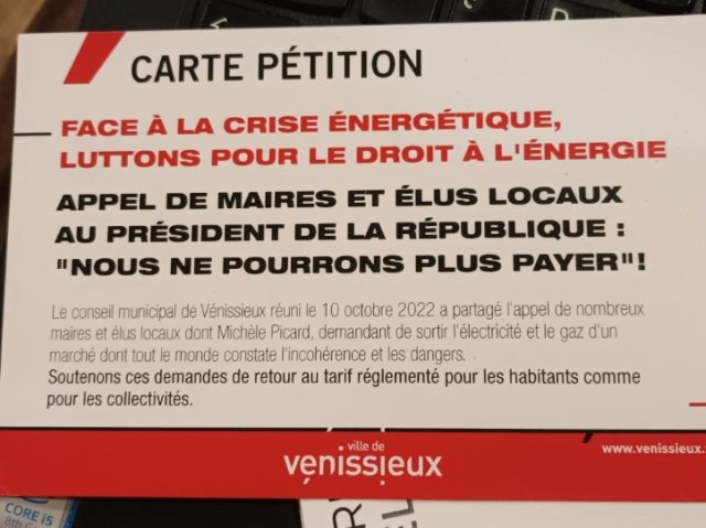 Carte pétition à dupliquer pour mobiliser les habitants de nos villes pour un retour au tarif réglementé de l’énergie pour les habitants et les collectivités