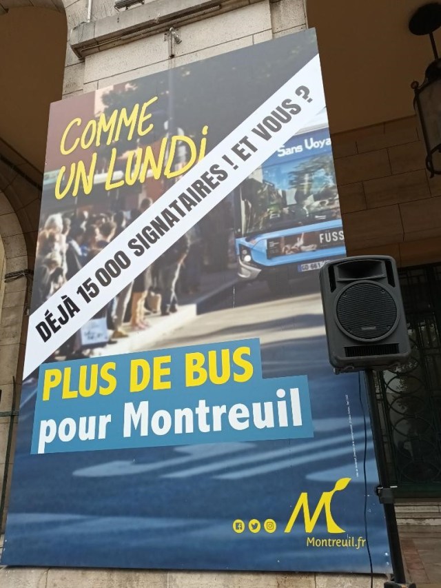 Prises de parole devant le parvis de la mairie de Montreuil, contre l’augmentation des prix de l’énergie, des denrées pour les cantines, la baisse des moyens et d’autonomie des collectivités…