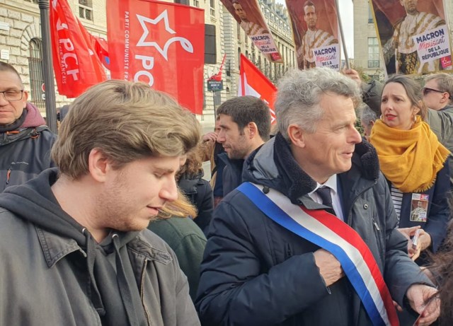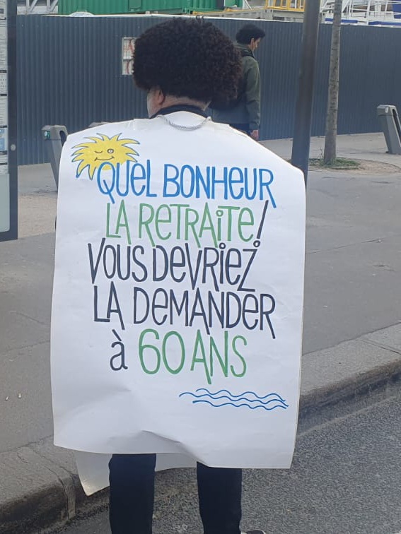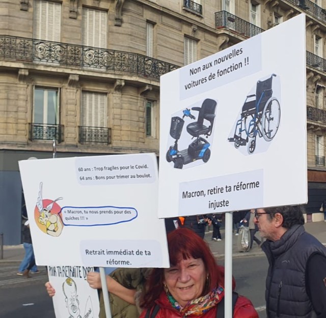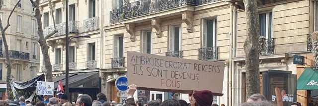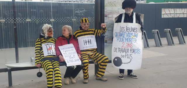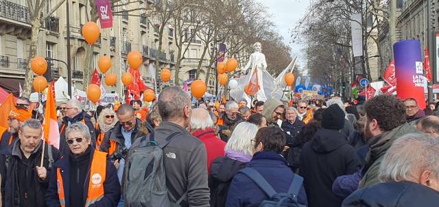 Images du cortège de Paris cet après-midi, accompagné par la belle marionnette du théâtre du Soleil… et de quelques bagnards pleins d’humour !