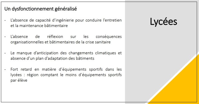 Parmi l’ordre du jour était abordée la situation dans les lycées franciliens : dotations, restauration, plan d’urgence, lycées professionnels…