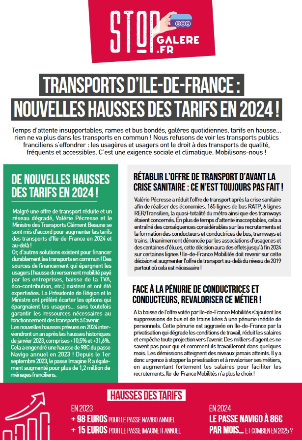 Valérie Pécresse fera voter au Conseil Régional, le 7 décembre, une hausse de +2,6% des tarifs de tous les titres de transports dès le 1er janvier 2024. Surprise : le passe Imagine R augmentera également !