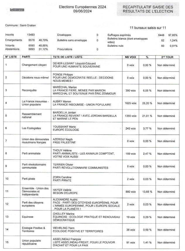 Européennes 2024 à Saint Gratien Le 10 juin 2024 par isabellevolatdans Saint-Gratien Partager : Partager sur X(ouvre dans une nouvelle fenêtre) X Partager sur Facebook(ouvre dans une nouvelle fenêtre) Facebook J’aime chargement…