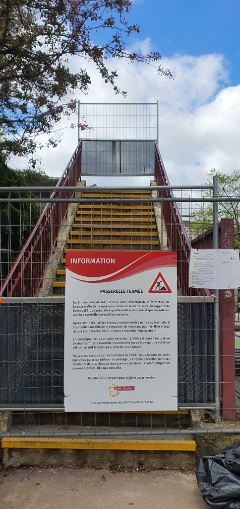 Réponse du maire : la ville prévoit la construction d’une passerelle totalement accessible et non couverte. Les études foncières sont en cours ainsi que les discussions avec la SNCF. Il est techniquement impossible d’assurer une liaison entièrement cyclable qui demanderait une pente de plusieurs centaines de mètres. La ville sera contrainte d’opter pour des ascenseurs de part de d’autre permettant le cheminement des piétons, des cyclistes et des personnes à mobilité réduite.