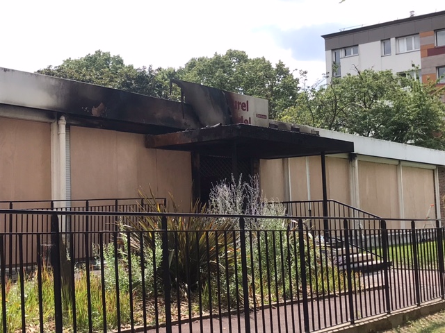 Le centre Camille Claudel incendié il y a bientôt un an présente toujours une façade ravagée.