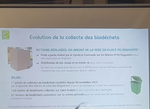Rien de neuf sur la collecte des bio-déchets qui semble bien fonctionner. Des habitants du centre-ville regrettent même de ne pas avoir des bacs de collecte et sont obligés pour trier leurs déchets ménagers, de venir les déposer aux Marais. Le système expérimental ne semble pas devoir être étendu dans l’immédiat. Personne n’est revenu sur « l’anomalie » écologique qui consiste à envoyer le contenu de ces bacs de collecte gratiennois à l’autre bout de l’Île-de-France afin de les traiter.