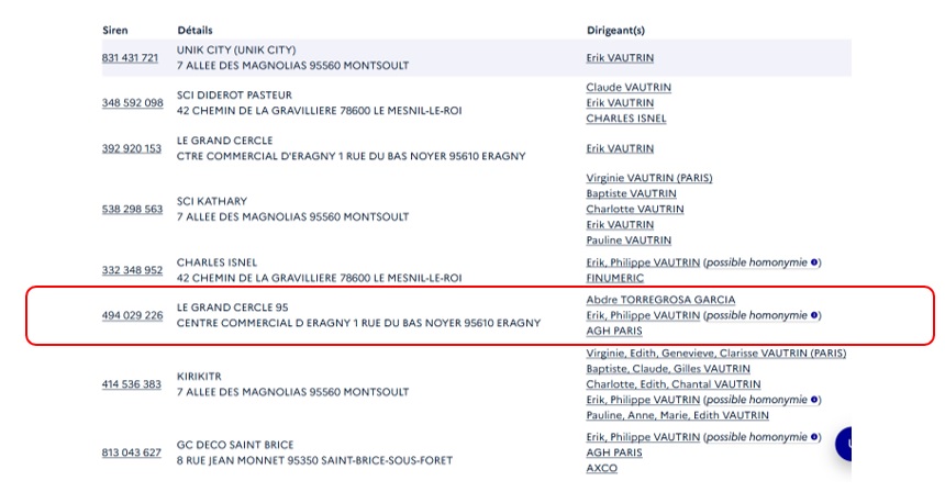Parmi la myriade des autres participations de M. Vautrin, dirigeant et actionnaire du « Grand Cercle », nous n’avons pas d’information sur leur santé financière.