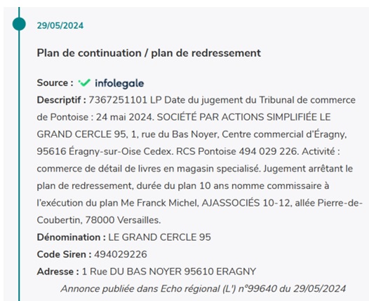 Au point que le groupe « Le Grand Cercle » a fait l’objet d’un plan de sauvegarde en février 2023. Le tribunal de Pontoise a prononcé un plan de continuation de l’activité en mai 2024.