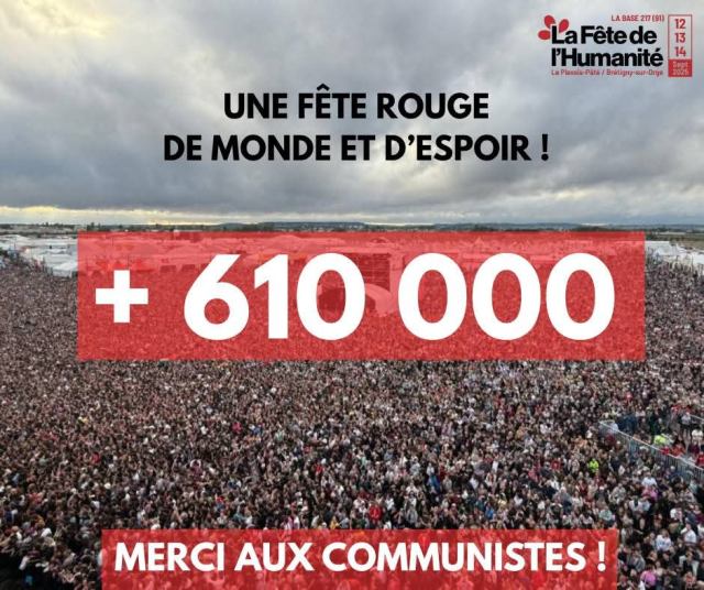 Magnifique, cette Fête ! Durant trois jours, une foule immense a submergé les allées, la fraternité accrochée au cœur, portant en étendard la liberté, la solidarité et la paix. Pour la première fois depuis des années, nous avons affiché complet : 610 000 personnes ! Dimanche, un peuple uni en est reparti, conscient d’avoir vécu un moment décisif pour les luttes à venir.