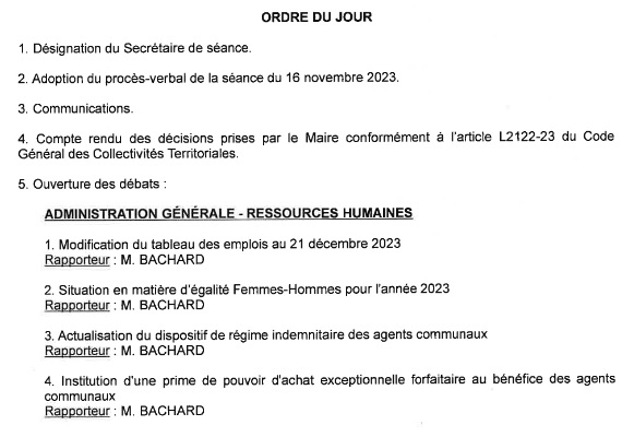 Prochain Conseil municipal le jeudi 21 décembre 2023, avec le vote du budget communal.