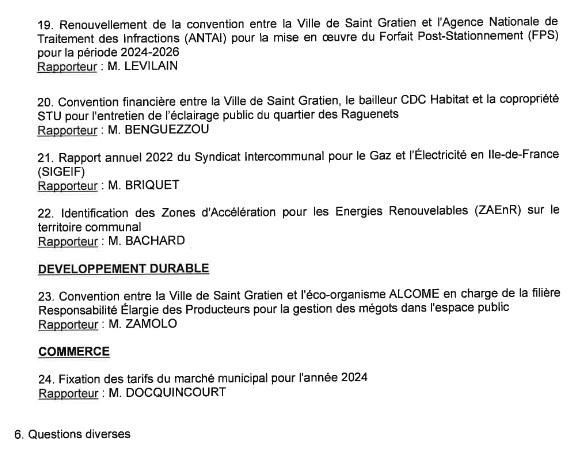 Conseil municipal de Saint Gratien : suite de notre compte-rendu de la séance du 16 novembre 2023