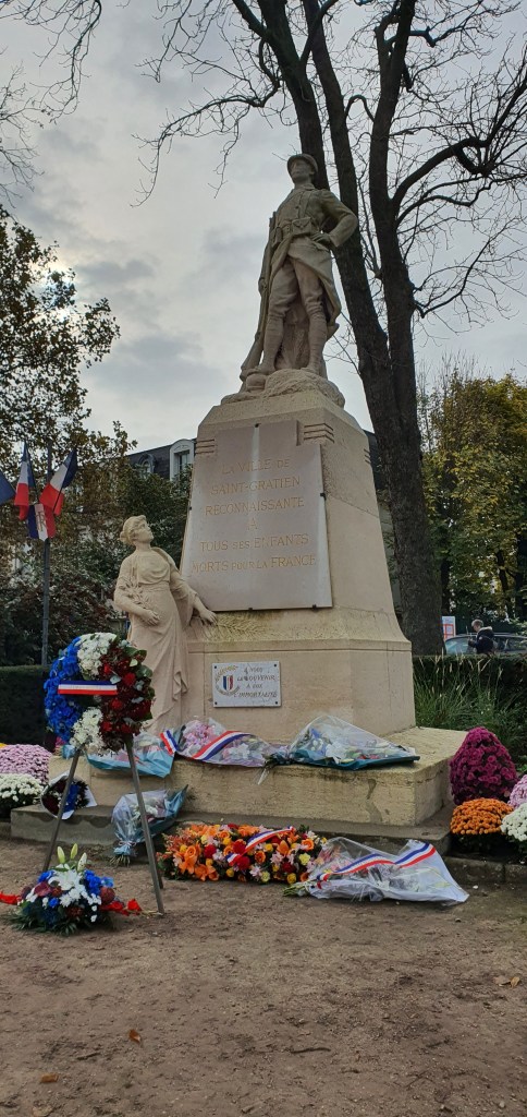 Une lectrice attentive me fait remarquer que je n’ai pas évoqué sur ce blog la cérémonie du 11 novembre dernier. Elle s’inquiète de savoir si nous avons boudé la commémoration qui se déroule chaque 11 novembre devant le monument aux morts de la place de la mairie, pour se poursuivre ensuite au cimetière.