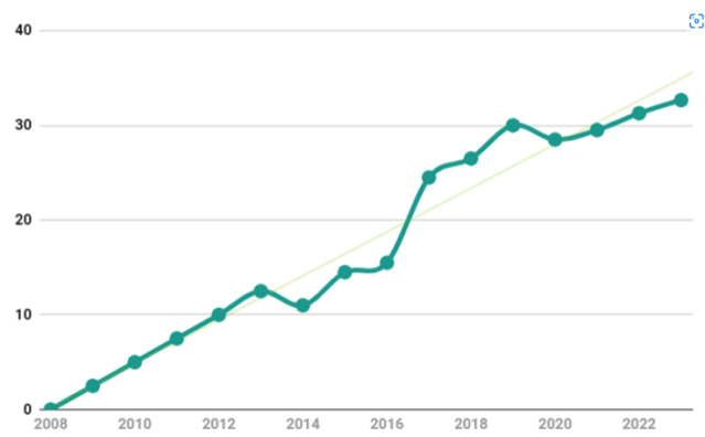 Augmentation annuelle du TURPE en % annuel depuis 2008