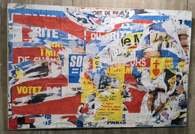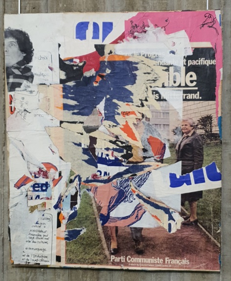 Regret et surprise également, comme nous fûmes surpris cet hiver au détour de l’exposition « Libres comme l’art » organisée par le PCF fin 2021/début 2022, lorsque nous sommes tombé.e.s au sous-sol du siège du PCF nez à nez avec les « déchirements » de Jacques Villeglé.