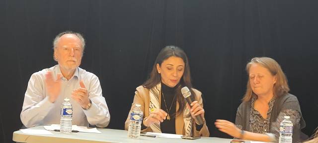 Photos ci-dessous de S. B. prises au cours du Conseil municipal durant notre question orale sur la paix en Palestine, lors de la venue à Argenteuil de Hala Abou-Hassira, et lors de son intervention à la fête de l’Humanité