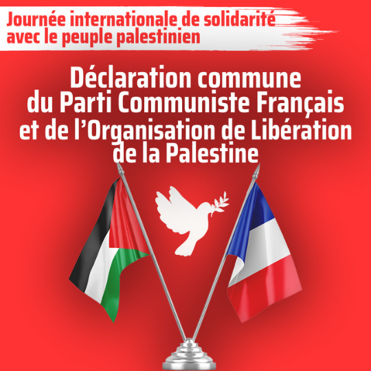 En cette Journée internationale de solidarité envers le peuple palestinien, le PCF et l’OLP annoncent donc s’engager dans la construction d’une campagne large de solidarité à l’échelle européenne et française pour la réalisation des droits nationaux du peuple palestinien.