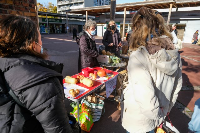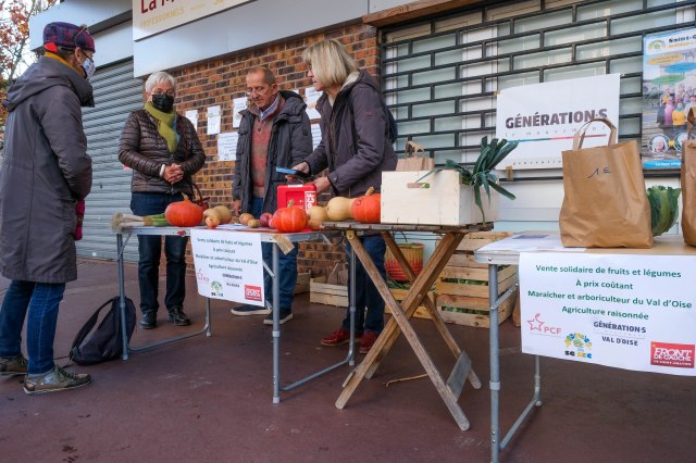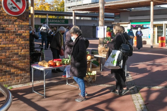 Au centre commercial des Raguenets ont donc été vendus 240kg de pommes, pommes de terre, carottes, oignons… issues des cultures d’un maraîcher et d’un arboriculteur du Val d’Oise pratiquant une agriculture raisonnée. Légumes récoltés le jeudi, vendus à prix coûtant le samedi : qui dit mieux ? Tout au long de la matinée, les Gratiennois sont venus profiter de cette occasion de se nourrir sainement, localement, à prix modéré. Ils apprécient et nous l’ont dit. Une bonne occasion aussi pour échanger sur la vie locale en cette période pré-électorale. Logement, commerce, circulation, coupure entre les quartiers, vie culturelle, démocratie locale… autant de sujets qui souvent interrogent, préoccupent ou mécontentent. Les discussions ont porté aussi sur des thèmes plus généraux, comme le référendum sur la privatisation d’ADP. On y revient prochainement ici. Deux journalistes de la presse locale avaient aussi fait le déplacement.